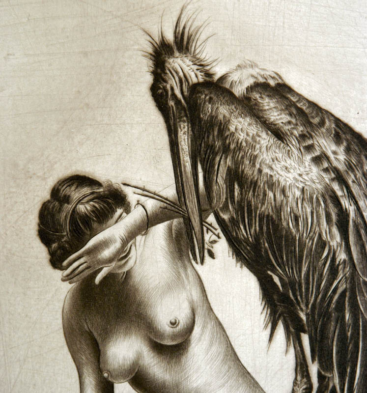 Die Schöne erwehrt sich zögernd eines mit Nestbaumaterial nahenden